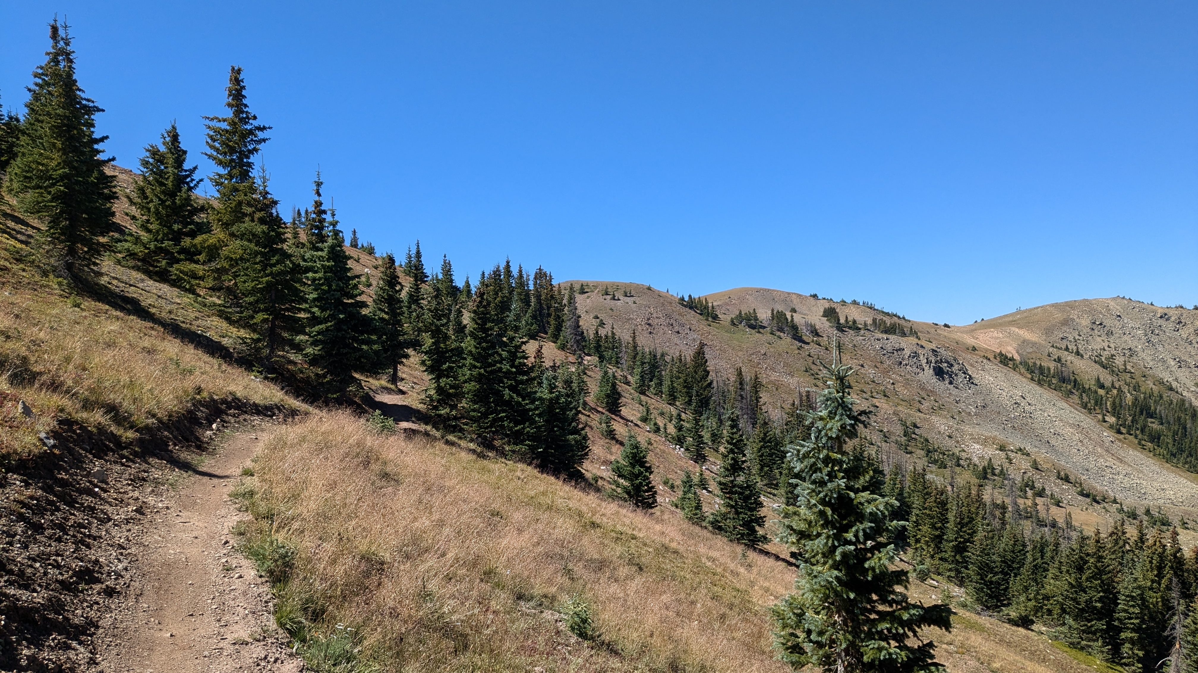 I ended the morning with a grueling, 5-mile uphill through lodgepole pine and spruce-fir forests. Climbs like this make me disagree with the general consensus among CT backpackers that the Collegiate East is easier than the Collegiate West. True, the Collegiate West’s climbs are higher and rockier. But the scenery on the West is so incredible that I stop focusing on the lactic acid burn in my legs and the way my lungs strain to take in enough air. Sometimes I don’t know if I’m out of breath because I’m hiking uphill or because the mountain views leave me breathless!