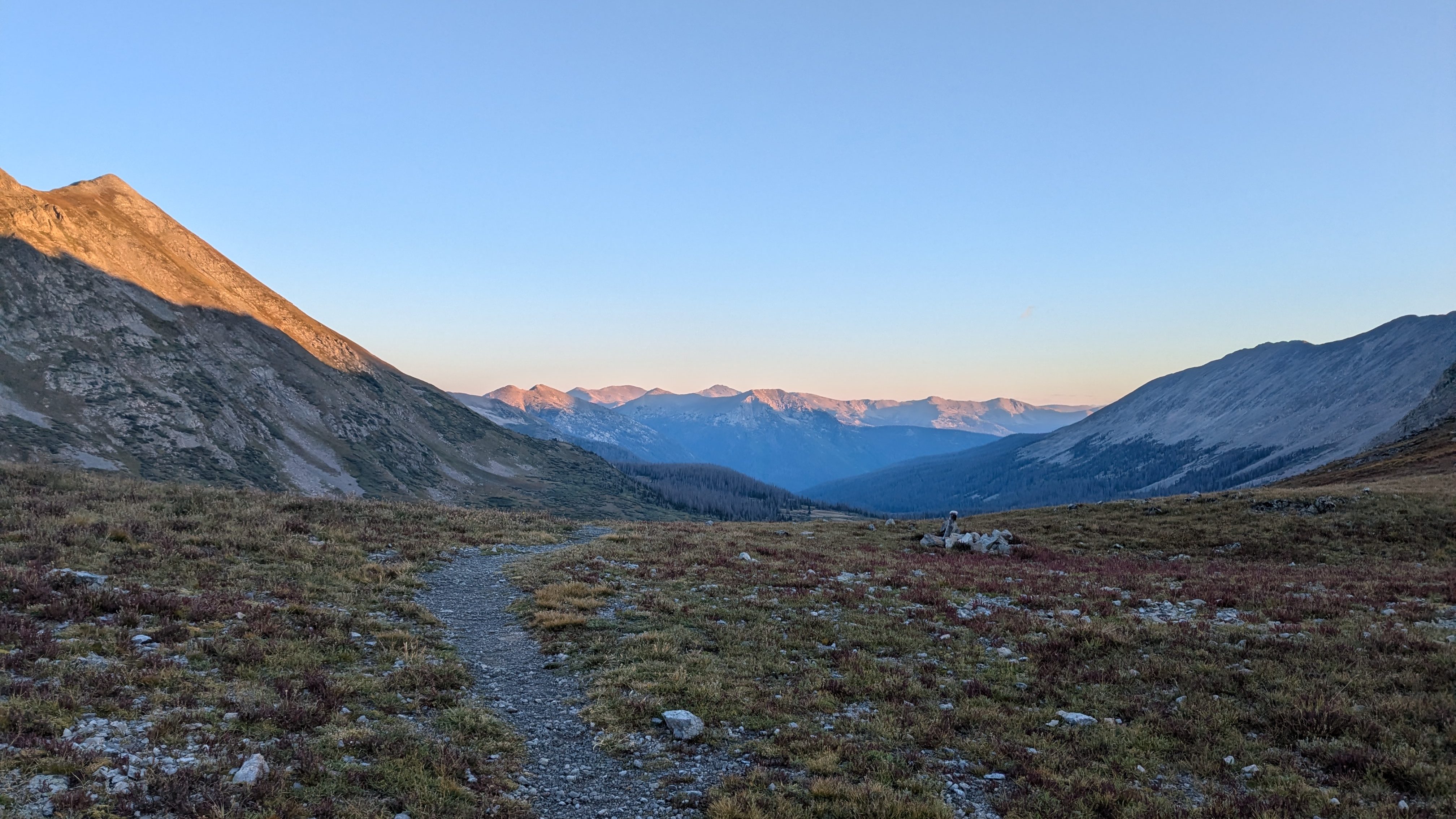 I hiked slower than usual through this section – partially because I knew I was almost done, partially because I stopped for lots of photos, and partially because I forgot to eat regularly and was feeling depleted. I reached Cottonwood Pass before sunset, nearly the same time of day I’d started the loop on Monday evening. Sunburnt and tired, but giddy over accomplishing my goal, I got in my car. I drove down the winding paved road to Buena Vista for a well-earned post-hike dinner.