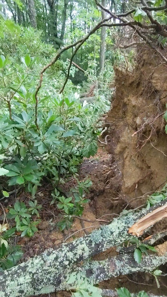 I was pretty shaken up after the storm and seeing the extensive damage the next morning. I called my boyfriend’s mom, who was 45 minutes away and asked her to pick me up from the trail at Highway 321 (Hampton, TN). I’m glad I didn’t ask her to pick me up on Dennis Cove Road since she wouldn’t have gotten through due to the flooding and downed trees.