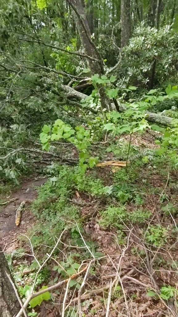 The tornado in Avery County was less than 10 miles as the crow flies from the Moreland Gap Shelter where I camped. This might explain the roaring I heard, but not the swaths of fallen trees along the AT between Moreland Gap Shelter and Dennis Cove Road.