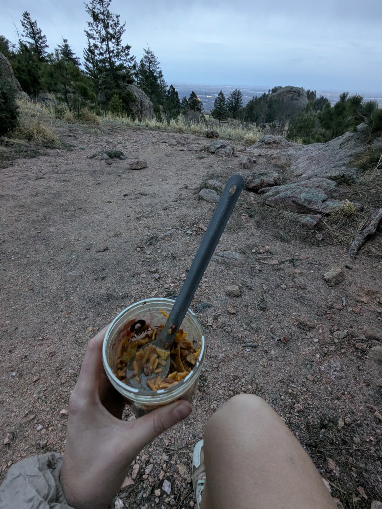 - Cold-soaking has its perks. Though I’ve backpacked without a stove before, this was my first time trying a cold soak dinner: beans and veggies with hot sauce, Daiya “cheese”, and tortilla chips. For years, I’ve been skeptical of cold soaking, assuming it was gross. But after hiking all day, almost anything tastes pretty good. The biggest advantage was that since I started rehydrating my food in the afternoon, my dinner was instantly ready to eat when I got to camp! I’ve decided to at least start the PCT stoveless but ship myself my stove if I get sick of cold meals.