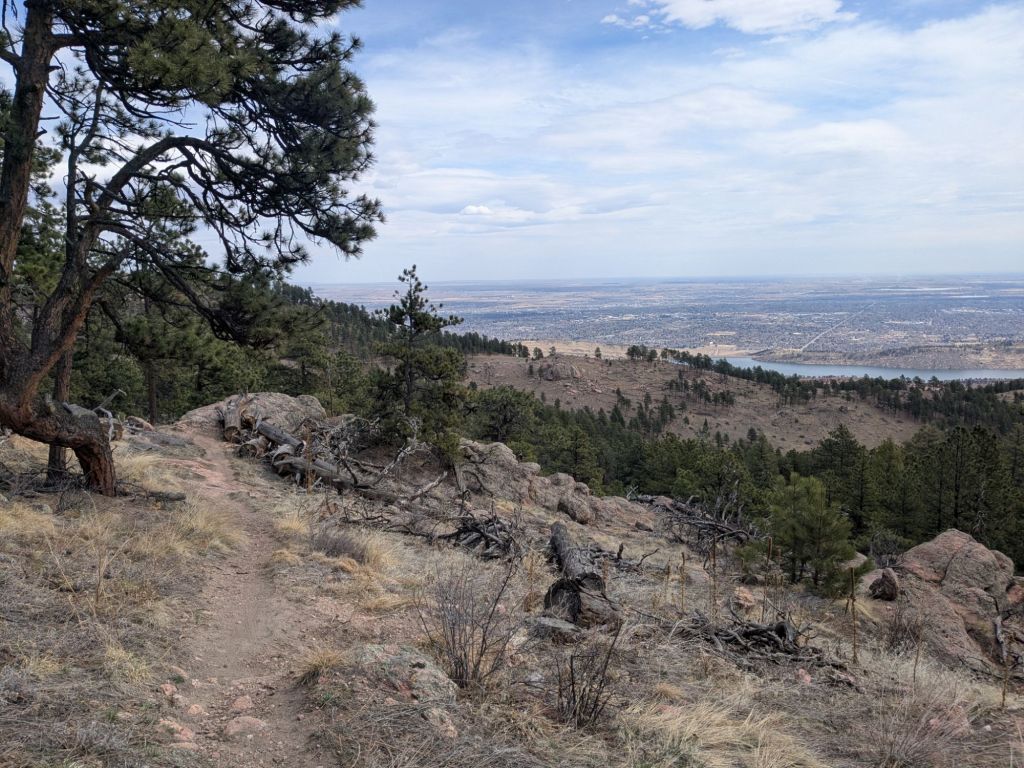 After a 20-minute drive to the state park, I hit the trail. The route I chose follows the course of a trail race that takes place later in the spring. This is a gorgeous but challenging route through pine forest in the foothills with several thousand feet of elevation gain and loss.