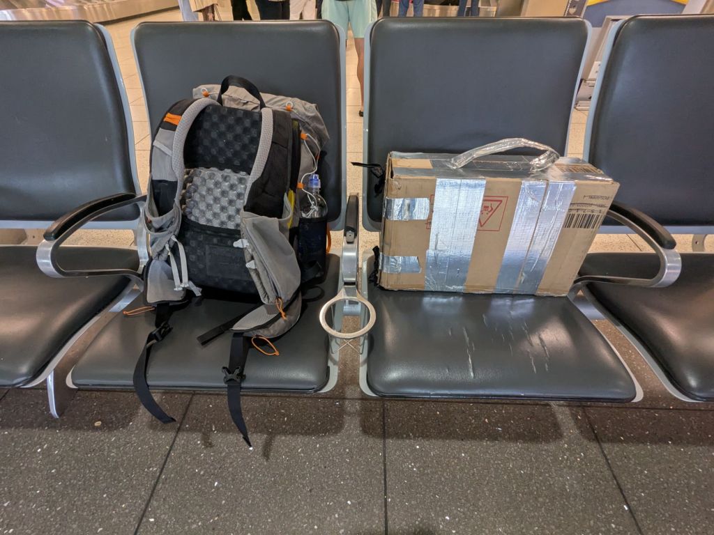 Conveniently, my frameless pack squished down enough to be my carry-on bag. The flight and collecting my checked box went as smoothly as possible.