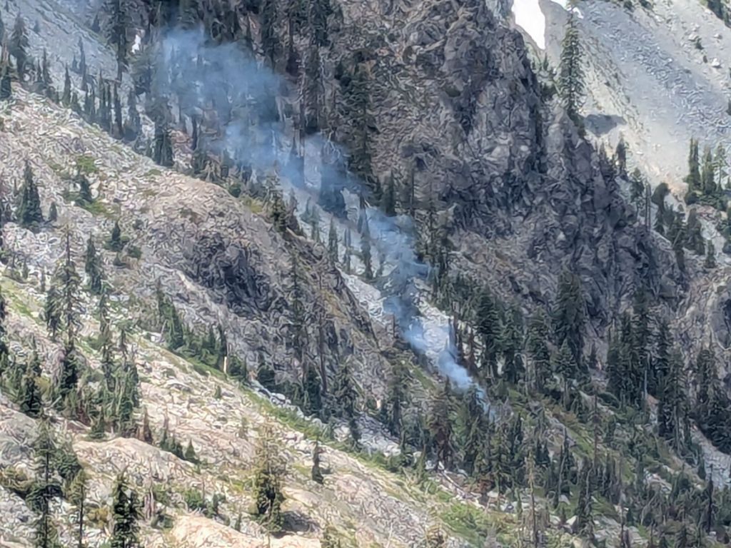 A small spot fire (possibly part of the Summit Fire) in the distance.