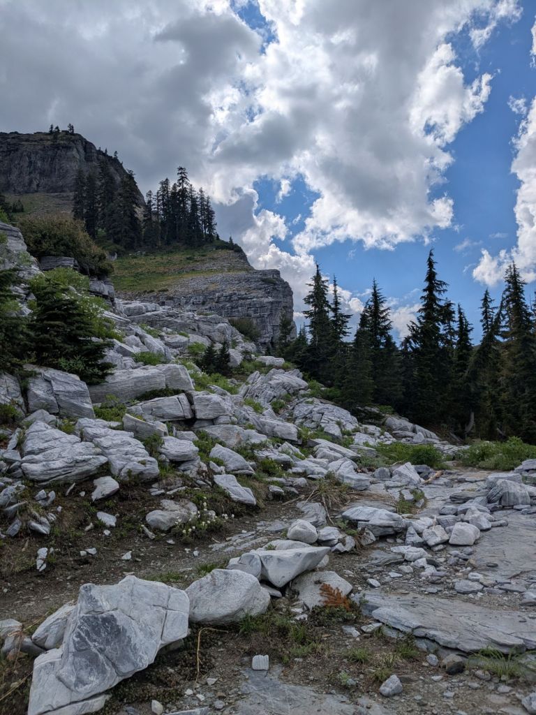 The recently burned area was actually quite small. However, I spent much of the day crossing other burn areas from older fires too. Even so, I’m glad that I got to hike this part of the trail. The Marble Mountains were definitely a highlight. They are tall outcrops of silvery white rock standing tall above the surrounding conifer trees.