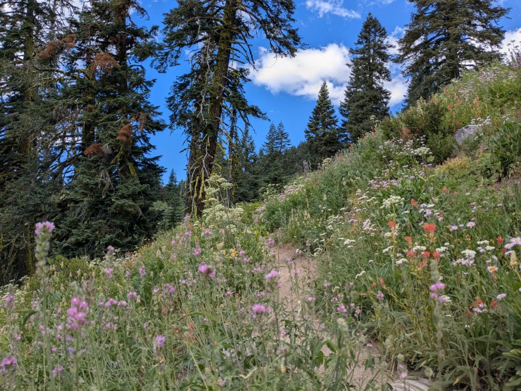 However, I was proven wrong. Within miles of entering Oregon, the mountains became more subdued, and climbs more gradual. The conifer forests seemed healthier and occasionally opened up into lovely flower-filled meadows.