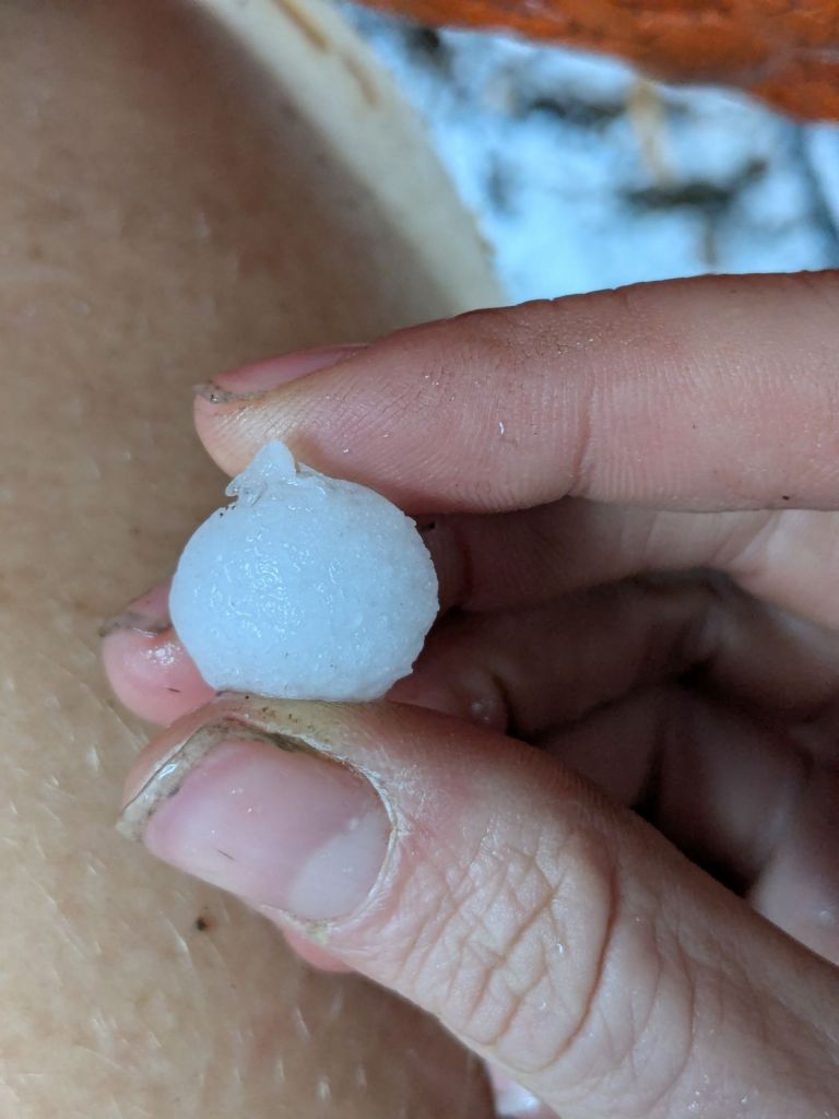 Once the hail stopped, I looked around. The ground was covered in almost an inch of accumulated hail! It looked like it had snowed!