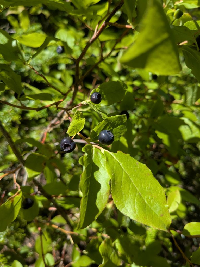 Soda wasn’t the only sweet treat today. The trail corridor today was lined with tons of huckleberry bushes – all ripe and ready to eat! I learned from Swish, who takes an interest in foraging, that you can tell huckleberries from blueberries because they are reddish, not greenish, on the inside. We stopped and gorged ourselves on the tasty berries several times throughout the day.