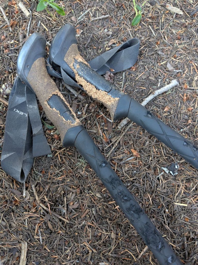 Unfortunately, the ants weren’t our only nighttime critter visitor. In the night, some animals came and chewed through the cork handles of my trekking poles. Feeling disgruntled, I repaired them as best I could with Leukotape.