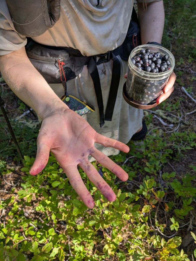 Purple fingers after picking enough huckleberries to fill my cold soak jar.