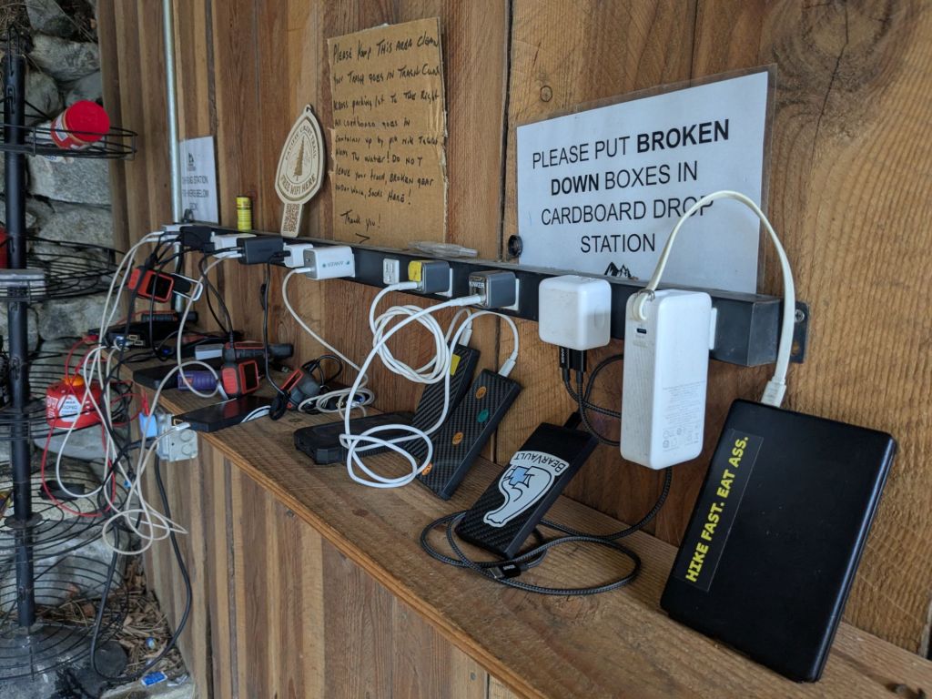 She is not the first to note that Swish and I seem to be two of the dirtiest and most homeless-looking thru-hikers. She walked away, but a few minutes later, returned, handed Swish forty bucks, and told us to get a hot meal! We did as we were told, and headed up onto the deck for a burger.